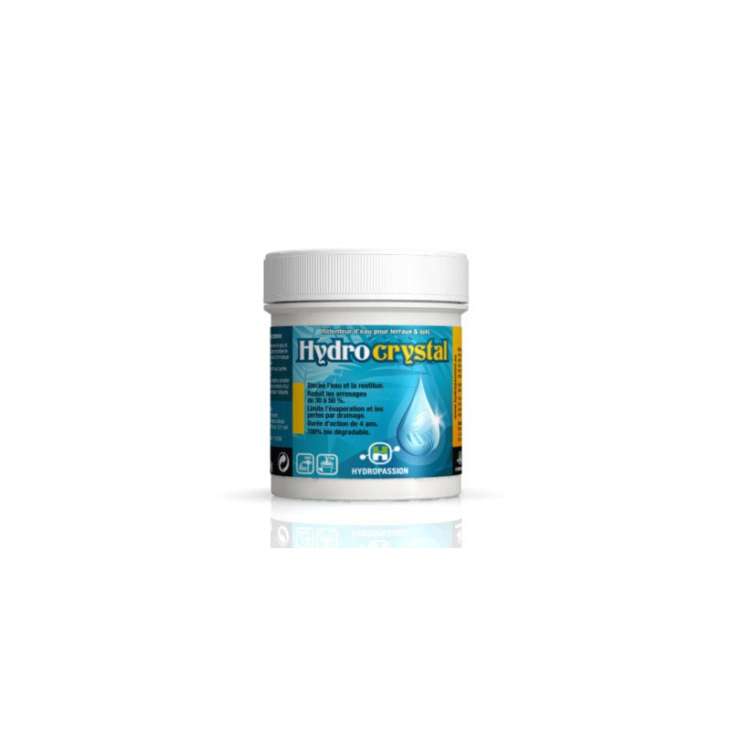 HYDRO CRYSTAL de HYDROPASSION est efficace sur une période minimale de deux ans, période durant laquelle il peut absorber et restituer jusqu'à 200 fois son poids sec en eau.
