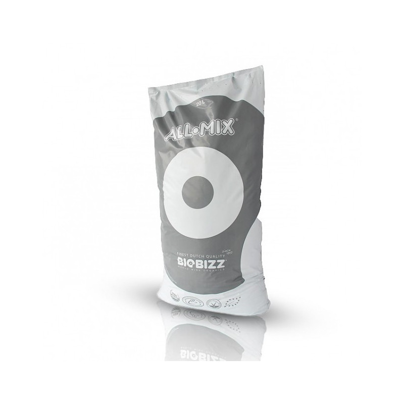 Le All Mix de Biobizz est un mélange biologique prêt à l'emploi pour les pots (aussi bien en intérieur qu'en extérieur) garantissant une bonne aération et drainage pour le dévelopement racinaire ainsi qu'une vie bactérienne du sol active grâce à son engrais de vers.